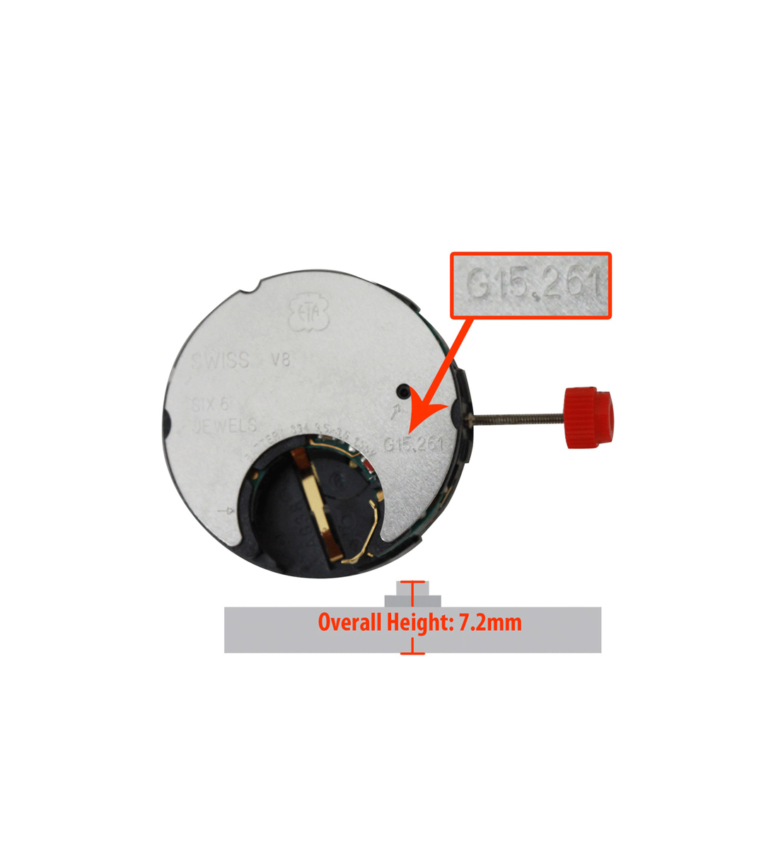 Tinggi dari bagian bawah mesin jam tangan ke atas pinion kedua sapuan adalah 7,2 mm