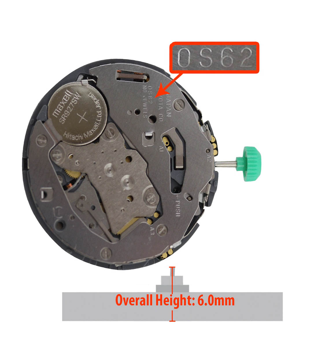 Tinggi dari bagian bawah mesin jam hingga bagian atas pinion kedua sapuan adalah 6.0mm