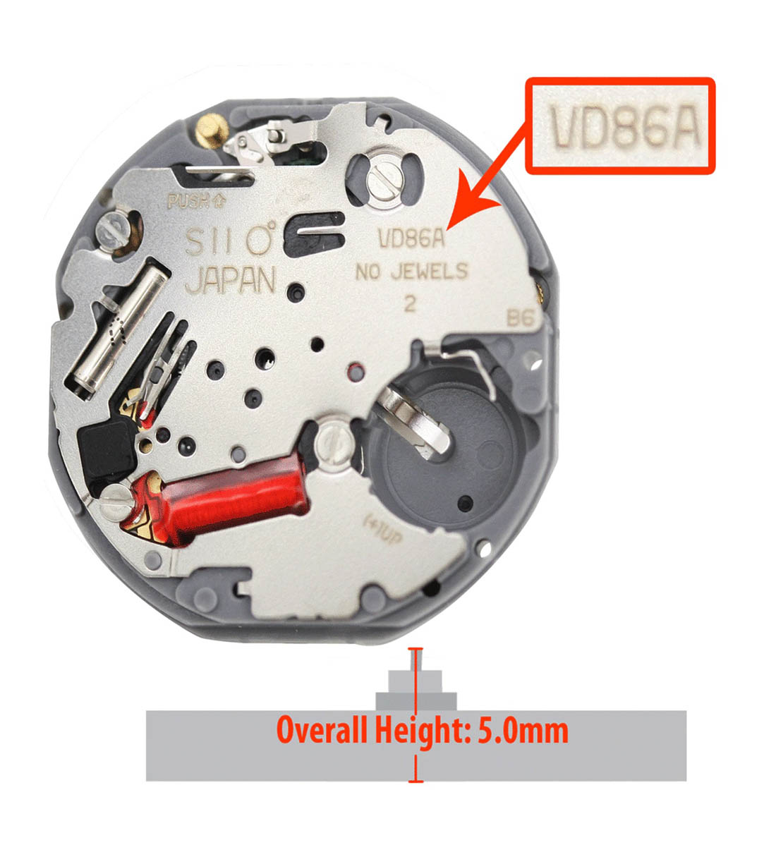 Ketinggian dari bagian bawah mesin jam tangan ke atas pinion menit adalah 5,0 mm