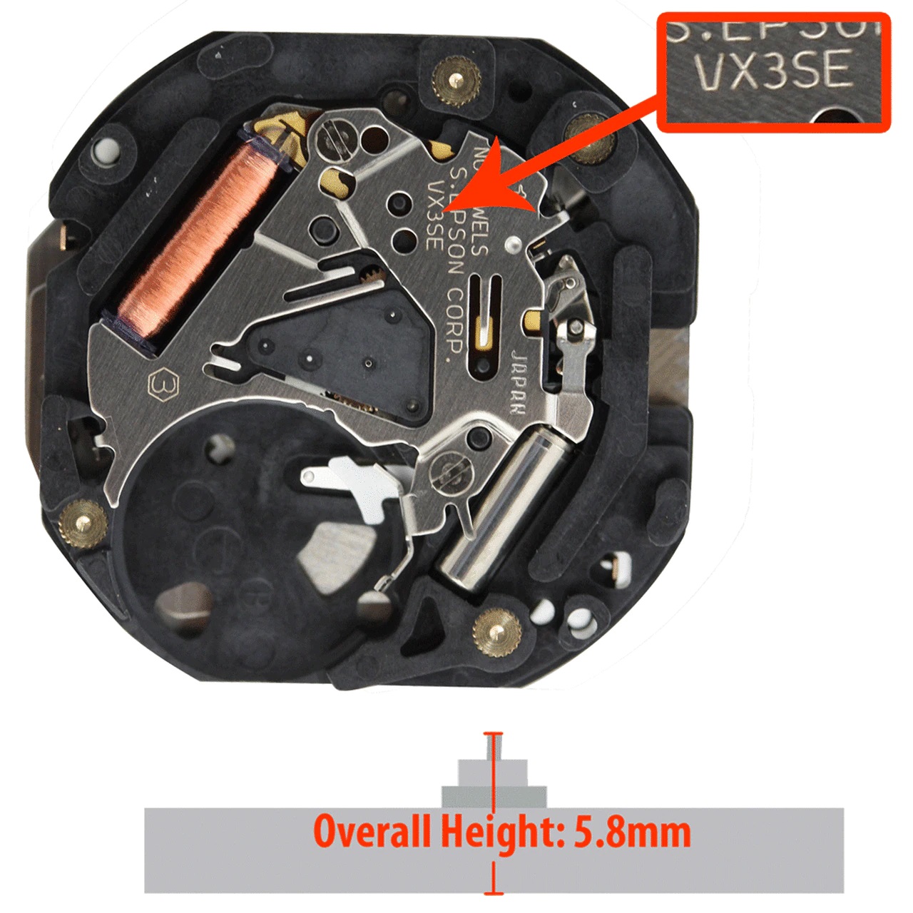 Ketinggian dari bagian bawah mesin jam hingga bagian atas pinion kedua sapuan adalah 5,8 mm